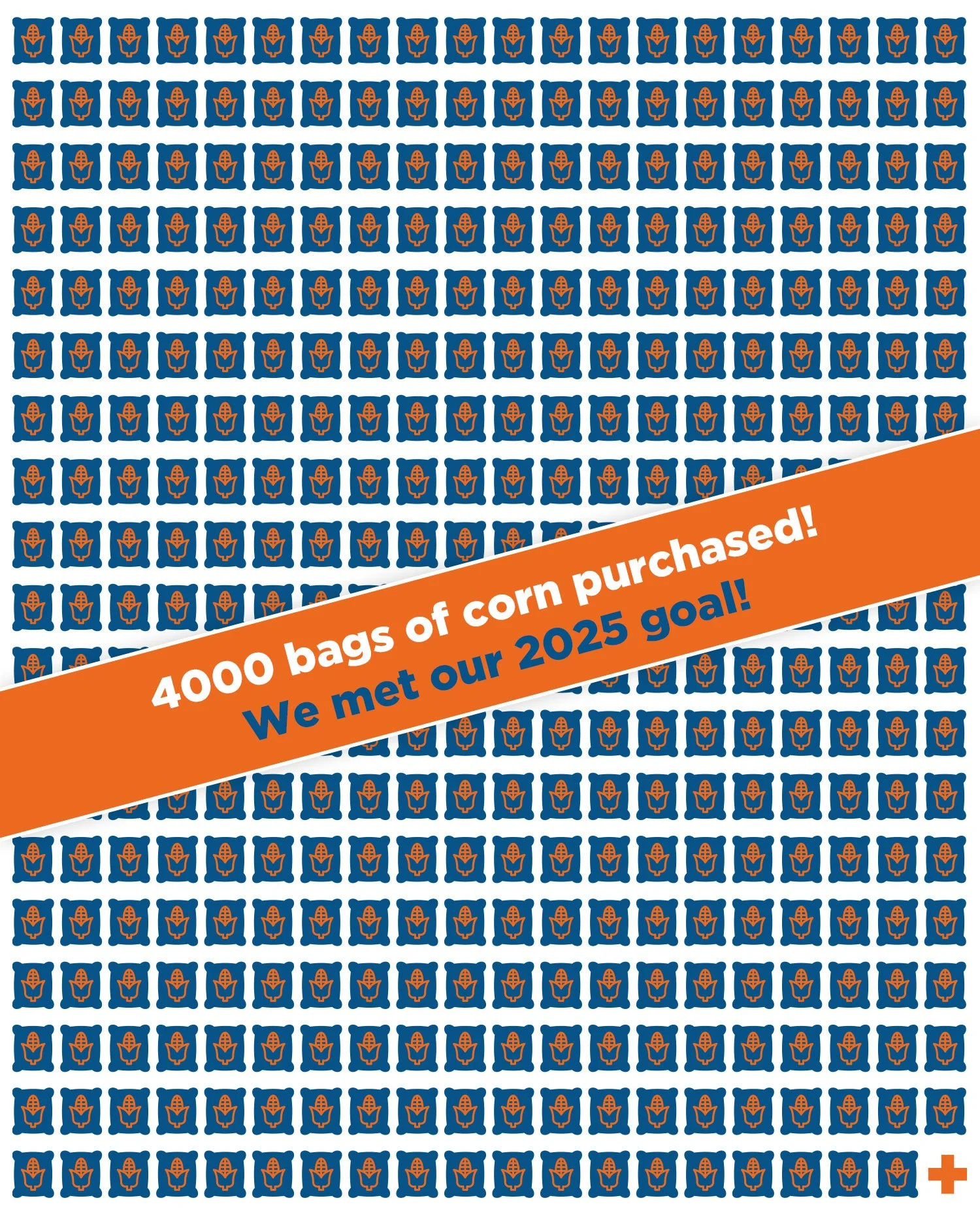 This year, we need to purchase 4000 bags of corn, an increase from last year’s goal of 3800.